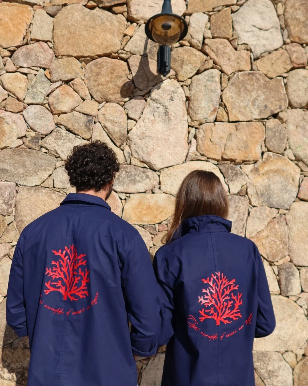 Ce modèle unique est une référence aux croyances méditerranéennes et corses autour du corail, symbole de protection contre le mauvais œil. Les reflets rouges éclatants du motif évoquent l’ancrage culturel et spirituel de cette veste pas comme les autres.